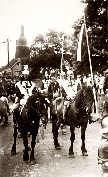 Darsteller der Gruppe II vor dem ehemaligen Feldtor. [AiRKN, F 01 - Fotosammlung Kreisarchiv Neuss - Orte]
