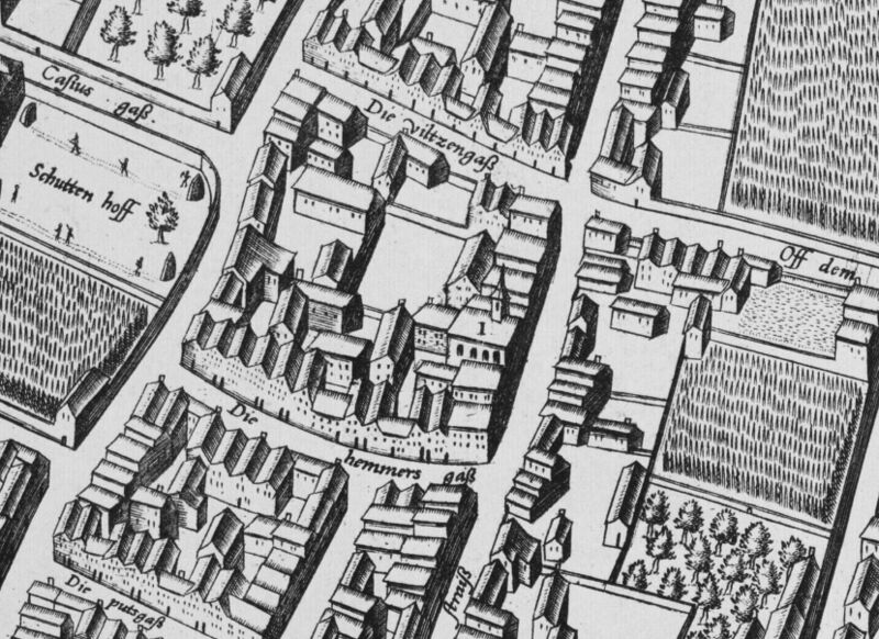 Detail Hospital an der Breitestraße in Köln auf dem Mercator-Plan (1570/71)