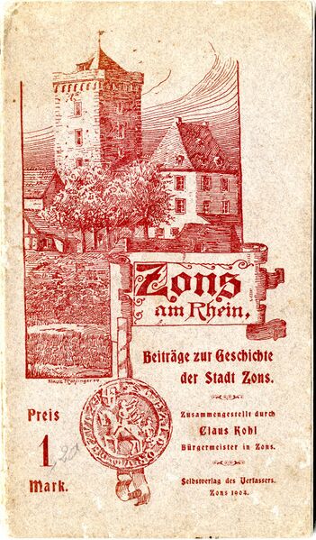 Titelseite der Zons-Monografie von Bürgermeister Claus Kohl (1904).