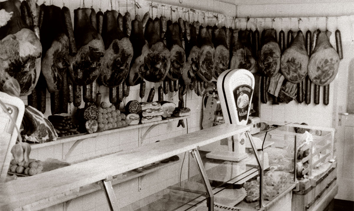 Metzgerei Cremer unmittelbar nach der Währungsreform 1948.