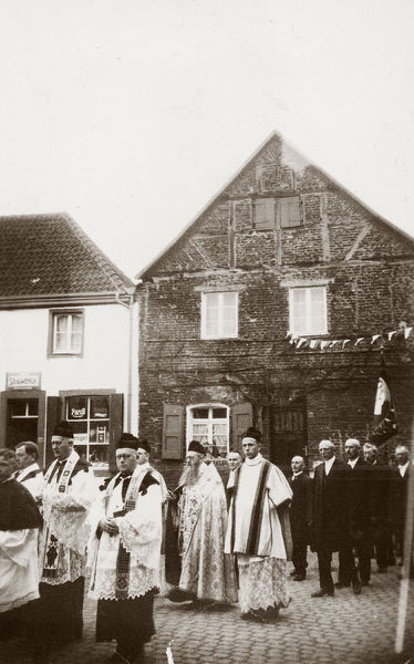 Geistliche und Bruderschaftsmitglieder im Festzug anlässlich des 75-jährigen Jubiläumsfestes der Wiedereinführung der "Wundermadonna" in die Pfarrkirche am 1. Mai 1932.