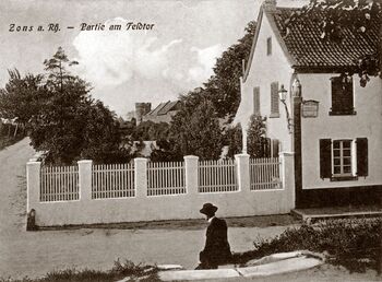 Der Zonser Chronist Josef Hugo berichtet 1815, über dem Feldtor habe Erzbischof Friedrich von Saarwerden die Inschrift anbringen lassen: "Wer will zo uns bauen, der soll Sitz und Stimme auf dem Lande haben".[12]