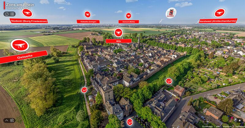 Du hast die Möglichkeit, die Altstadt von Zons und ihre Geschichte auch virtuell und interaktiv in Form eines eindrucksvollen hochauflösenden Virtuellen Rundgangs kennenzulernen. Klicke bitte hier oder auf das Vorschaubild.