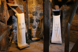 Das Mehl gelangte durch die Mehlrutsche über die Schütte in den angehängten Mehlsack. Hier wurde es gesichtet und gesiebt. Der fertige Mehlsack wurde schließlich über den Sackaufzug nach unten befördert.[9]