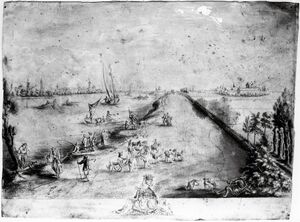Auch über städtische Baumaßnahmen wird häufiger berichtet. An erster Stelle stehen Straßen- und Wegebauarbeiten.[163] Auch die Wege außerhalb der Stadtmauern mussten häufig ausgebessert werden, in der Regel im Rahmen der bürgerlichen Hand- und Spanndienste. Hierdurch kam es immer wieder zu Auseinandersetzungen mit den Stürzelbergern, die diese Dienste regelmäßig verweigerten, wenn hierin nicht auch ein gewisser Vorteil für das Fischerdorf erkennbar war.[164] Die Wegeverhältnisse außerhalb der Stadtmauern waren in der zweiten Hälfte des 18. Jahrhunderts teils so katastrophal, dass "kein Mensch schier mit einer lediger Kaaren aus- oder einfahren konnte." So dauerten die Ausbesserungsarbeiten, auch aufgrund des zwischenzeitlichen Prozessierens mit den Stürzelbergern, von März 1764 bis April 1768.[165] Im Zusammenhang mit der Beschreibung dieser Arbeiten macht Johannes Peter Schwieren wenig später einen Eintrag, der einer der bedeutendsten, wenn nicht sogar der bedeutendste dieser Aufzeichnungen für die Ortsgeschichtsforschung ist: 1768 sei auch der "krumme Wall Gratt" vor dem Feldtor, also ein Erdwall nahe dem Feldtor, abgebrochen und in die Wege gefahren worden, wobei man auf die Fundamente mehrerer Häuser und ein altes Straßenpflaster gestoßen sei.[166] Die Beschreibung ist leider für eine genauere Interpretation zu ungenau. Was hier als Überrest einer größeren Zahl von Häusern interpretiert wird, könnte auch ein etwas größeres Gebäude gewesen sein. Jedenfalls ist davon auszugehen, dass es sich um Befunde aus der Zeit vor der Stadtgründung, also vor 1373, gehandelt hat. Für die Lage der vorstädtischen, dörflichen Siedlung sowie des 1288 zerstörten "castrums" Zons gibt es bislang aufgrund fehlender archäologischer oder archivischer Belege nur Mutmaßungen. Der Eintrag lenkt die Aufmerksamkeit auf das Areal nahe dem Feldtor, zumal auch das aufgedeckte Straßenpflaster auf eine besondere, exponierte Stelle hinweist. Neben den Wegebauarbeiten waren auch die Deichbauarbeiten eine ständige Herausforderung u.a. im Rahmen der bürgerlichen Dienstpflichten.[167]
