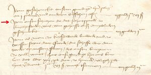 Die bislang früheste Erwähnung einer Schützenvereinigung in Zons findet sich in den städtischen Aufzeichnungen zur Akzise. Dies war eine Verbrauchssteuer, die in Zons in erster Linie für Arbeiten an der Stadtbefestigung verwendet wurde. 1460 erhielten die Zonser Schützen auf Veranlassung der Amtsleute aus dieser Kasse den nicht geringen Betrag von drei Gulden und einer Mark geschenkt, da sie sich an einem "Schießspiel" in Knechtsteden beteiligen wollten.[1] Bereits 1461/62 bekamen die Schützen und die Vereinigung erneut einen Geldzuschuss aus der Kasse, diesmal einen Gulden aus Anlass des Vogelschießens.[2] Eine mehrjährige Pause für die Vereinigung, zumindest im Hinblick auf das Vogelschießen, hat vermutlich der große Zonser Stadtbrand 1464 verursacht, denn es ist erst 1476/77 wieder in den Akzise-Aufzeichnungen von den Schützen die Rede. In diesem Jahr wurden sie sogar gleich mehrfach finanziell unterstützt: Einmal erhielten sie drei Mark für das Schießen nach dem "papagey", wobei es sich wohl um das städtische Königsvogelschießen handelte. Und "up Sent Bastianus Dach" (am Tag des hl. Sebastianus) gab man ihnen vier Mark. Schließlich erhielt auch der Schützenkönig nach dem Abschuss des "Papagey" noch einen Geldzuschuss in Höhe von 3 Mark.[3]