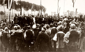 Darsteller der Gruppe III vor dem ehem. Feldtor.