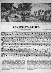 | 18:42, 15. Okt. 2015 | Lied Becker.jpg (Datei) | 159 KB | Zadmin (Diskussion | Beiträge) | "Zonser Stadtlied" nach dem Text von Dichter Michel Becker aus Köln, Melodie: Musiker und Dirigent Willi Hahn aus Zons. Im oberen Teil ist eine Zons-Zeichnung von Maler und Radierer Theo Blum aus Köln zu sehen. Das Lied dürfte um 193… | 1 | |
