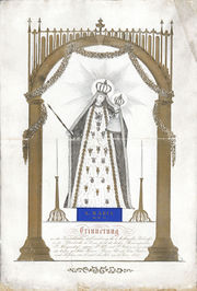 | 15:36, 14. Dez. 2016 | WMad04.jpg (Datei) | 170 KB | Zadmin (Diskussion | Beiträge) | Geistliche und Bruderschaftsmitglieder im Festzug anlässlich des 75-jährigen Jubiläumsfestes der Wiedereinführung der "Wundermadonna" in die Pfarrkirche am 1. Mai 1932. [PfAZ, 277] | 1 | |