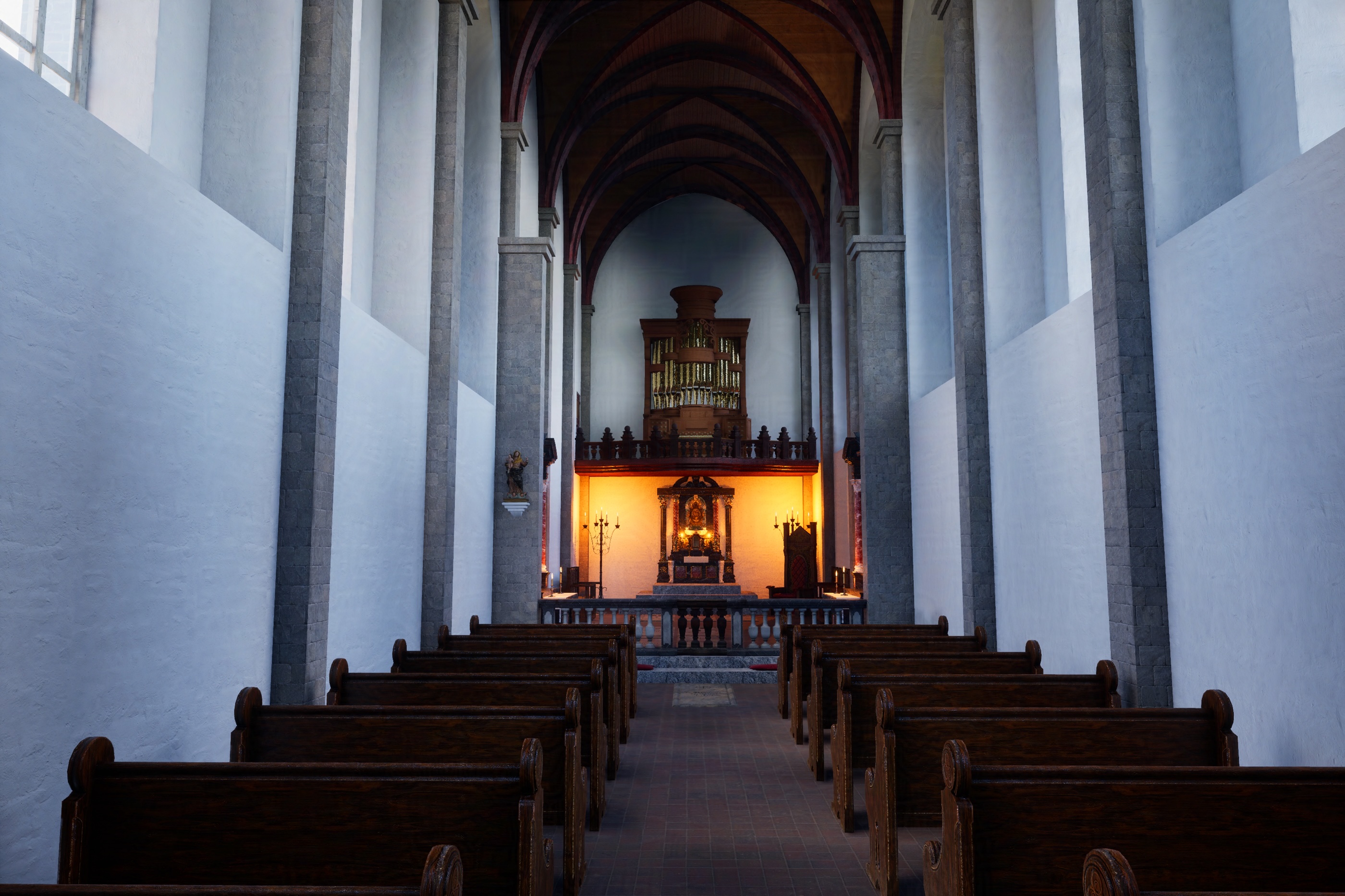 Rekonstruktion des ehemaligen Franziskanerklosters in Zons um 1700: Rendering der Klosterkirche.