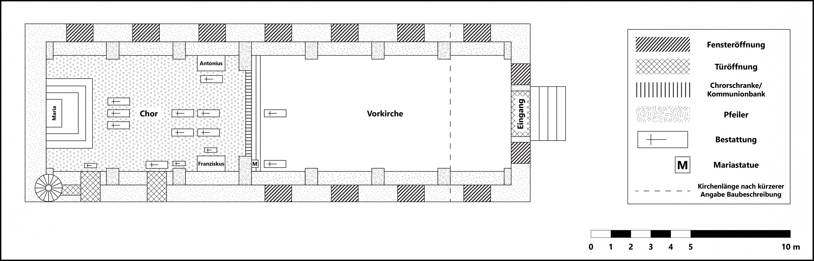 Rekonstruktion des ehemaligen Franziskanerklosters in Zons um 1700: Grundriss der Kirche