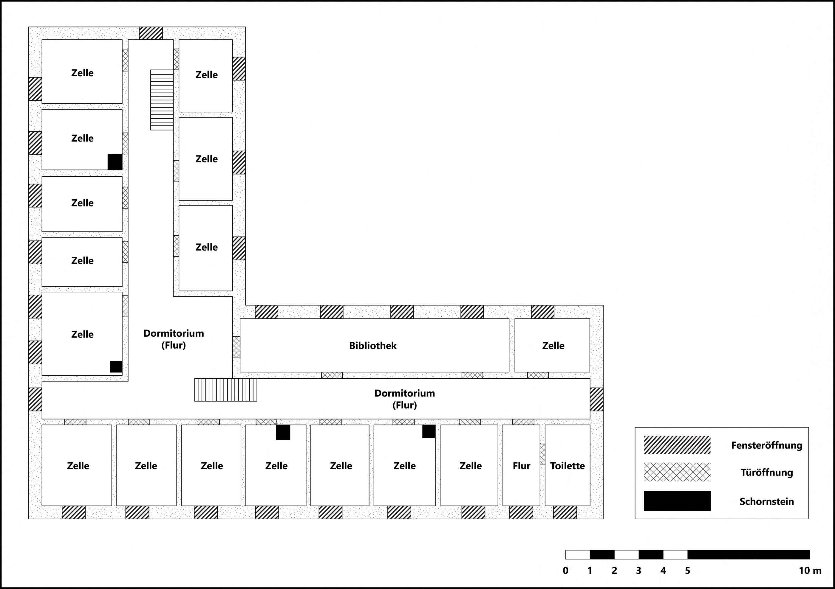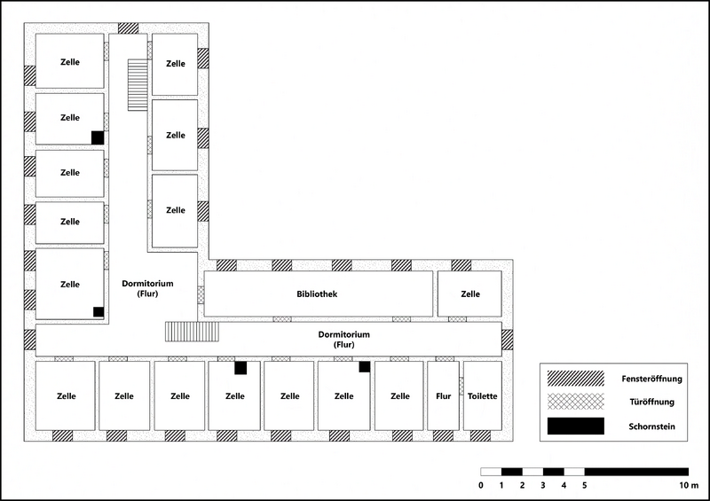 Rekonstruktion des ehemaligen Franziskanerklosters in Zons um 1700: Obergeschoss des Klostergebäudes