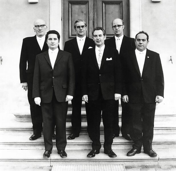 vorne v.l.: erster Kassierer Hans Wannhoff, erster Vorsitzender Hans Wingerath, zweiter Vorsitzender Willy Bless